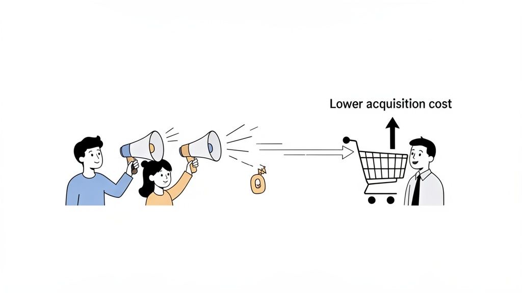 Let's face it: customer acquisition costs (CAC) in e-commerce are always climbing. If you're only relying on paid ads, you're constantly paying rent for an audience. A referral program completely changes that dynamic by tapping into your existing customer base as an organic, and much cheaper, way to get new business.