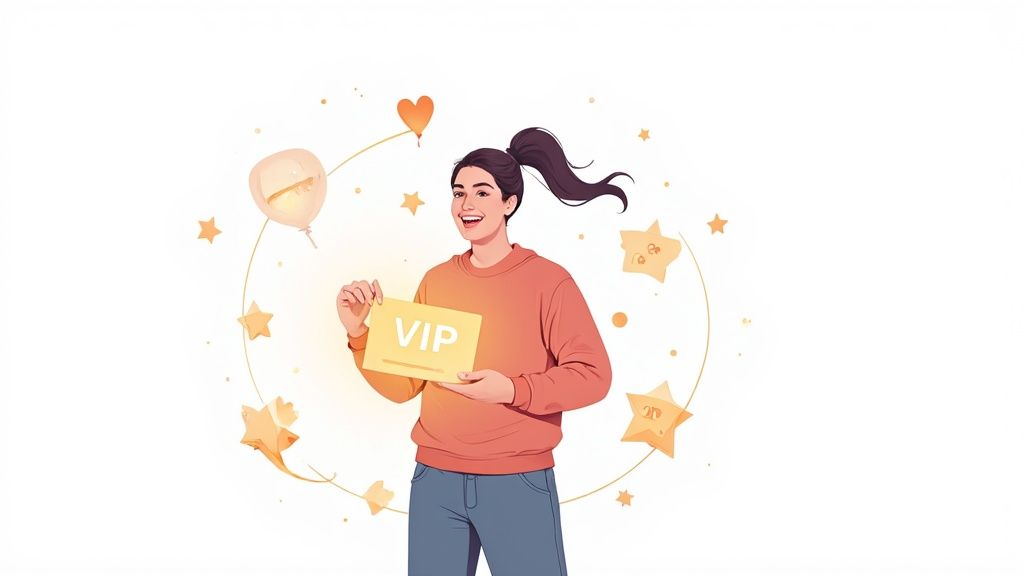 That feeling of graduating from a "Silver" to a "Gold" member is a real psychological win. These upper tiers should grant access to perks that money can't necessarily buy, like early access to new collections, free two-day shipping for life, or invites to exclusive brand events. This structure is a natural fit for fashion, beauty, or lifestyle brands where customers aren't just buying an item—they're buying into an identity. To really dig into this strategy, you can learn more about designing effective tiered rewards programs and get the most out of them.
