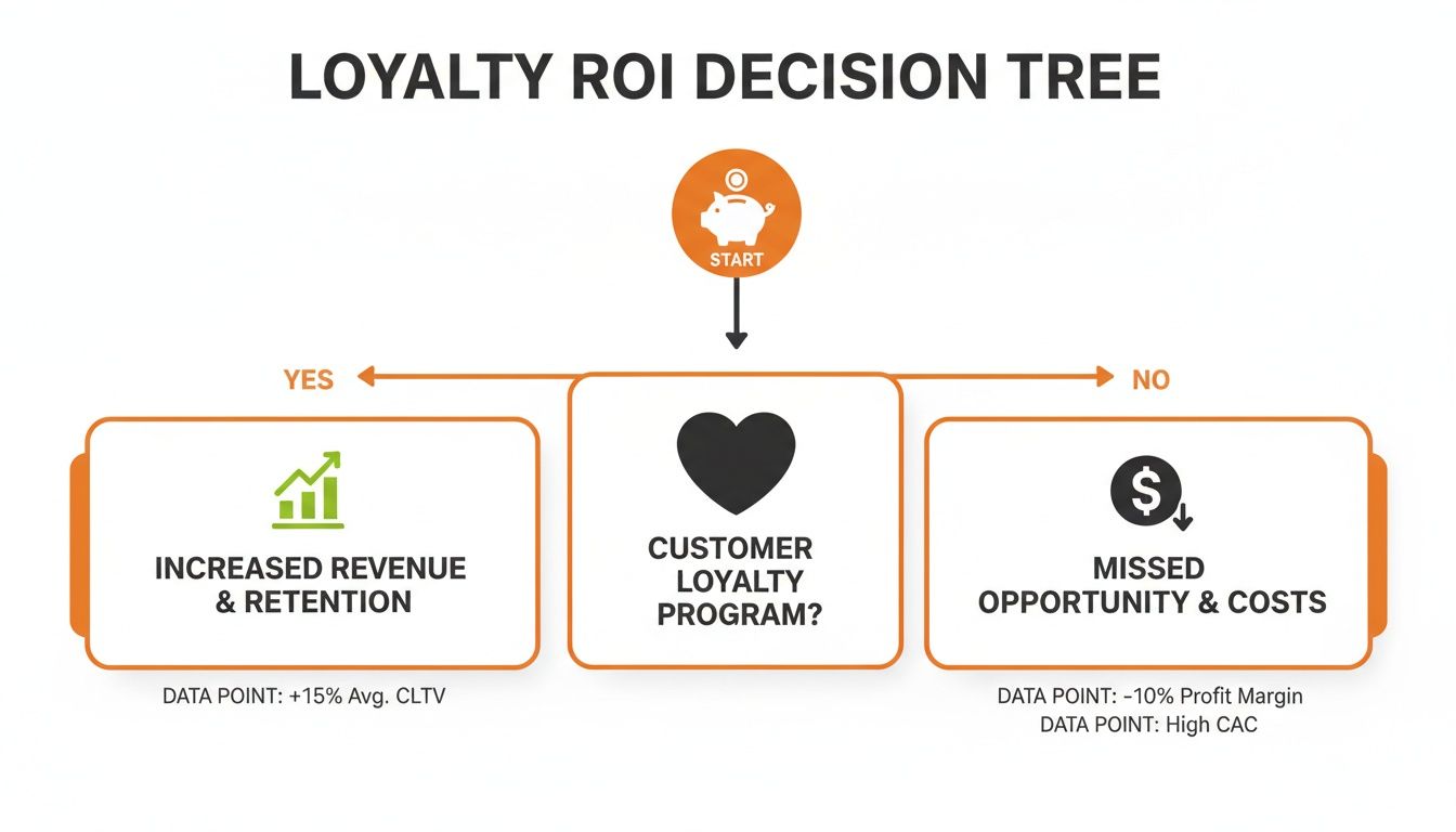 This decision tree illustrates how investing in customer relationships through a rewards program can directly fuel financial growth.