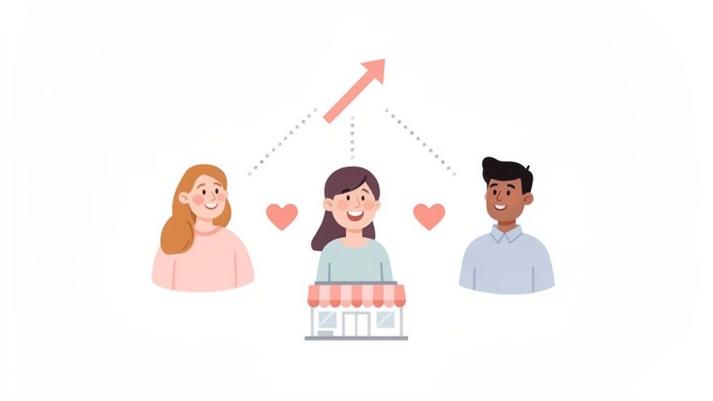 Think beyond your typical marketing channels for a moment. A referral program isn't just another tactic to check off your list; it's a living, breathing growth engine for your Shopify store. You’re tapping into the genuine enthusiasm of people who already love what you do, turning their authentic recommendations into a seriously effective way to find new customers.