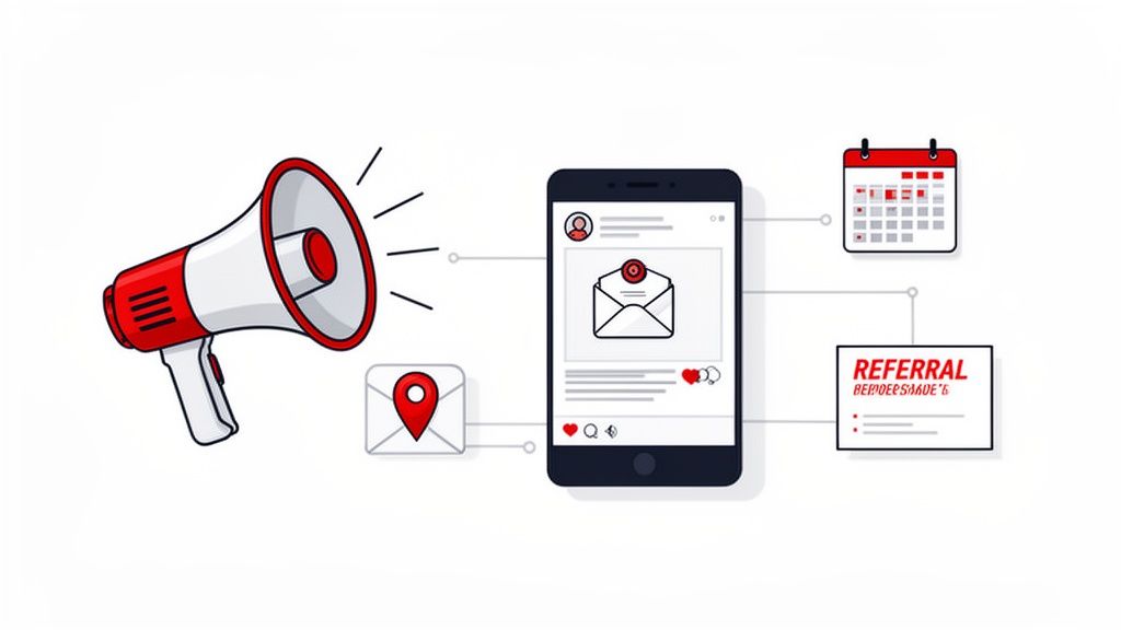 A friends referral program can't build momentum if it's tucked away in a dusty corner of your website. Promotion isn't a one-time thing; it’s about weaving the program into the very fabric of your customer journey so it feels like a natural part of the experience.