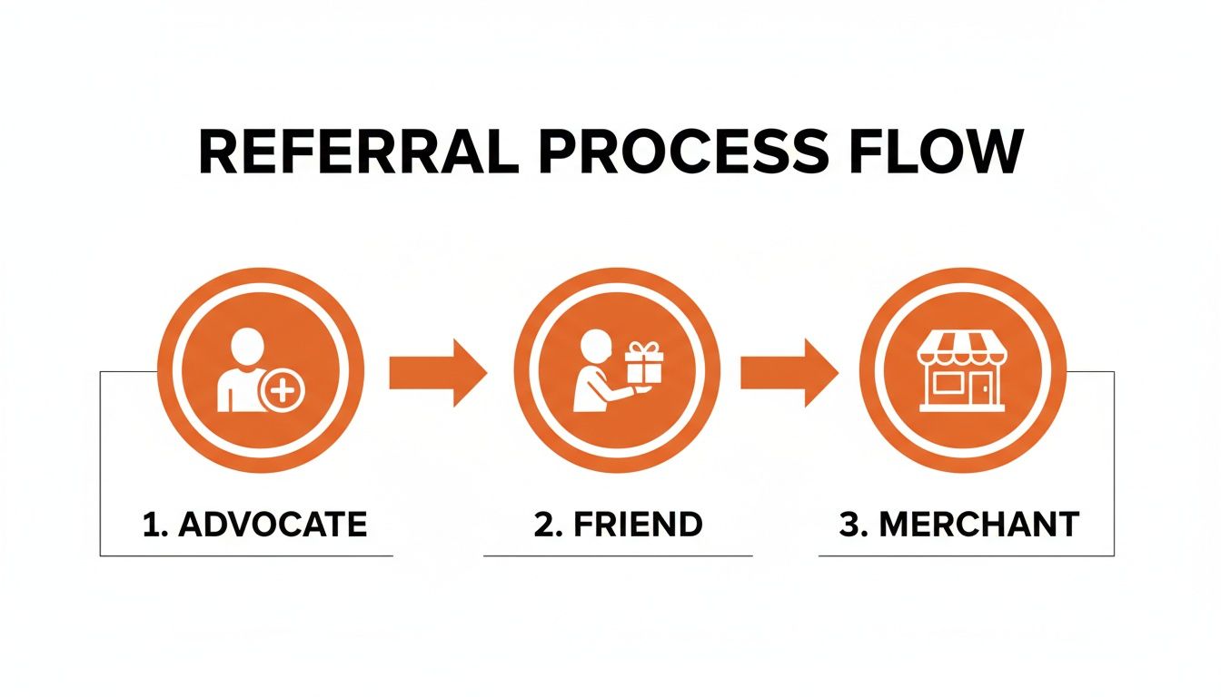 So, how does a referral actually work? Think of it like a digital breadcrumb trail. It’s an automated process that connects a happy customer’s recommendation directly to a new sale for your store. Let's walk through this path together, from the moment a customer shares to when the rewards are paid out.
