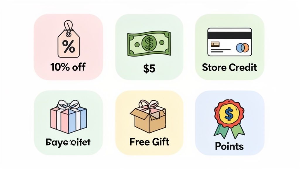 | Store Credit | Businesses focused on customer retention and lifetime value. | Guarantees the reward is spent back in your store. Encourages repeat business. | Less attractive for customers who don't plan to shop again soon. |