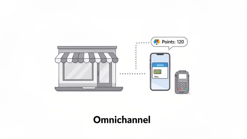 A truly great loyalty program needs to be wherever your customers are. This seamless, unified approach is what we call an omnichannel strategy. It means a customer's points, tier status, and rewards are the same whether they’re on their phone, their desktop, or standing at your checkout counter. It turns your program from a simple website feature into a core part of their relationship with your brand.