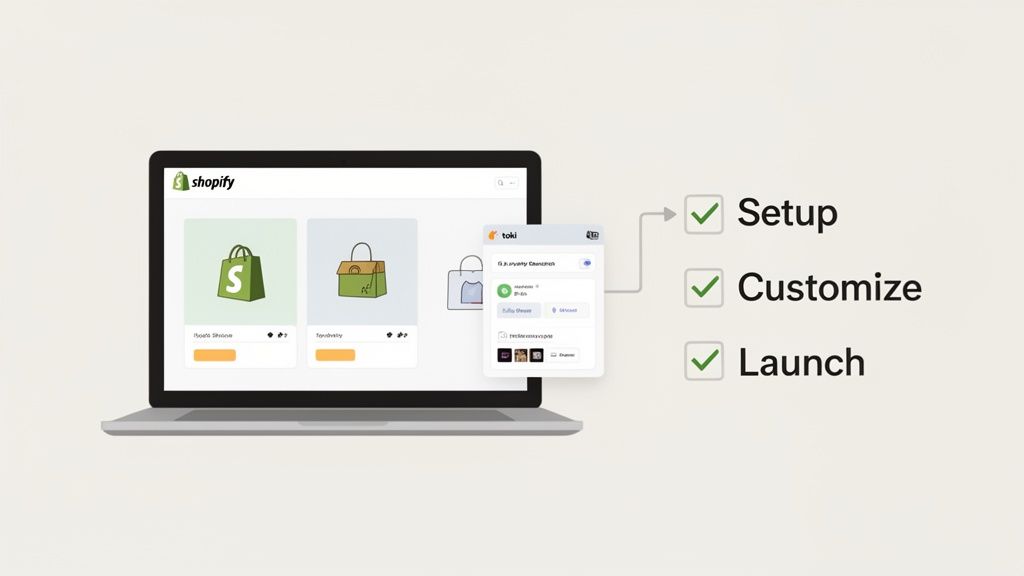 Alright, let's turn all this theory into action. If you're running on Shopify, launching a sophisticated point-based loyalty program is far less daunting than it sounds. You don't need a team of developers or weeks of setup—with a tool like Toki, the whole process is built to be straightforward.