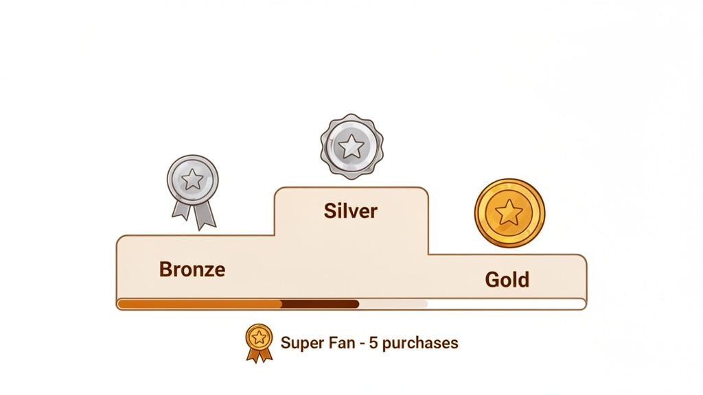 The most effective way to encourage higher spending and more frequent purchases is with a tiered loyalty program. The model is simple: you group customers into levels (think Bronze, Silver, Gold) based on their spending or engagement over a set period, like a calendar year. Each tier unlocks better and better perks, creating a clear incentive to climb the ladder.