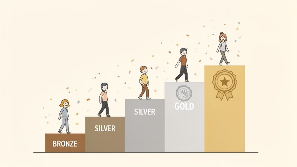 Once you’ve hammered out the basic economics of your points program, it’s time for the fun part: making it exciting. A simple earn-and-burn system works, sure, but it doesn’t create the emotional connection that turns casual shoppers into die-hard fans. That's where loyalty tiers and gamification come in. They transform the simple act of collecting points into a compelling experience.