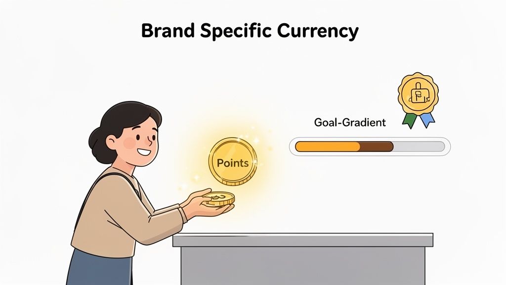 Think of it like creating your store's very own private money. Customers earn this currency by shopping with you, and they can only spend it within your brand's world. This simple concept is what makes points-based loyalty programs so effective. Suddenly, a purchase isn't just a one-and-done deal; it's an investment that brings a customer closer to their next perk.