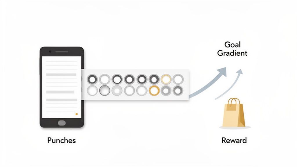 This timeless model taps directly into a powerful psychological trigger known as the goal gradient theory. The idea is simple: the closer we get to a goal, the more motivated we are to reach it. Each digital "punch" your customer earns isn't just a record of a sale—it's visible proof they’re getting closer to a prize. That visual momentum makes the final reward feel within reach, nudging them to make that next purchase just a little sooner.