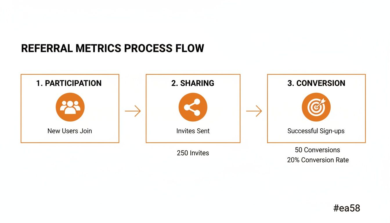 I like to think of a referral program's performance as a story told in three parts. Each metric reveals a different chapter, and together, they show you the entire customer journey from advocate to new sale. For a really detailed look at the setup, there are some great guides on referral program tracking that can walk you through the nitty-gritty.